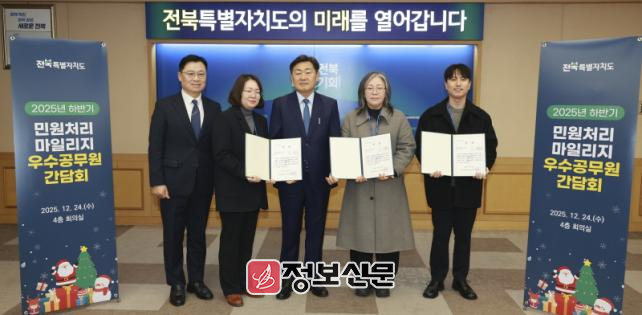 ![]() 전북특별자치도, 2025년 하반기 민원처리 마일리지 우수공무원 간담회 개최 |