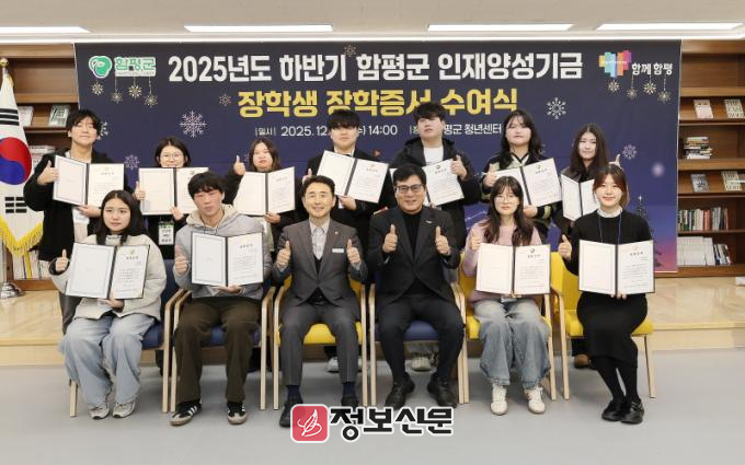함평군은 25일 “‘2025년 하반기 함평군 인재양성기금 장학생 장학증서 수여식’이 지난 24일 함평군 청년센터에서 개최됐다”고 밝혔다.