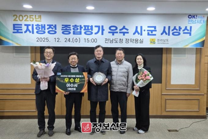 ![]() ▲ 여수시가 지난 24일 전라남도 토지행정 종합평가 우수 시·군 시상식에서 우수상을 수상했다. |