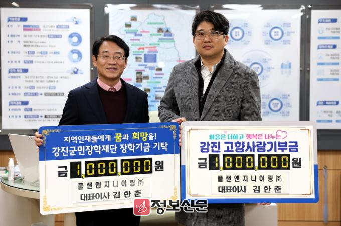 ![]() 강진군, 지역 인재 육성 장학금 기탁 행렬 줄이어(플랜엔지니어링(주)대표 김한춘) |