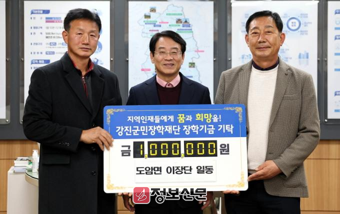 ![]() 강진군, 지역 인재 육성 장학금 기탁 행렬 줄이어(도암면 이장단) |