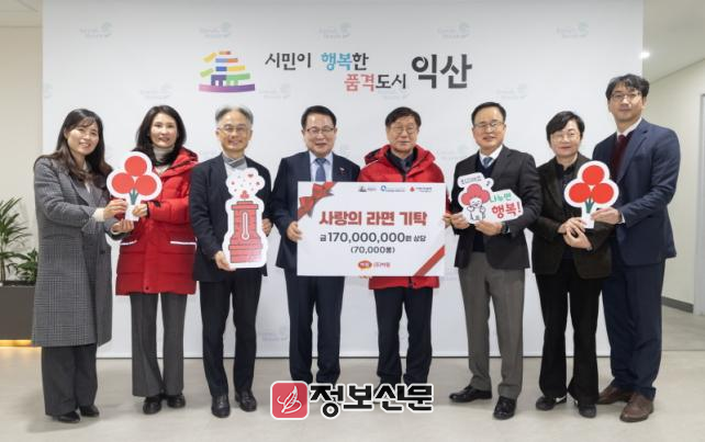 ㈜하림(사장 정호석)은 29일 익산시청을 찾아 지역 내 취약계층을 지원하기 위해 라면 3,700상자(1억 7,000만 원 상당)를 기탁했다.