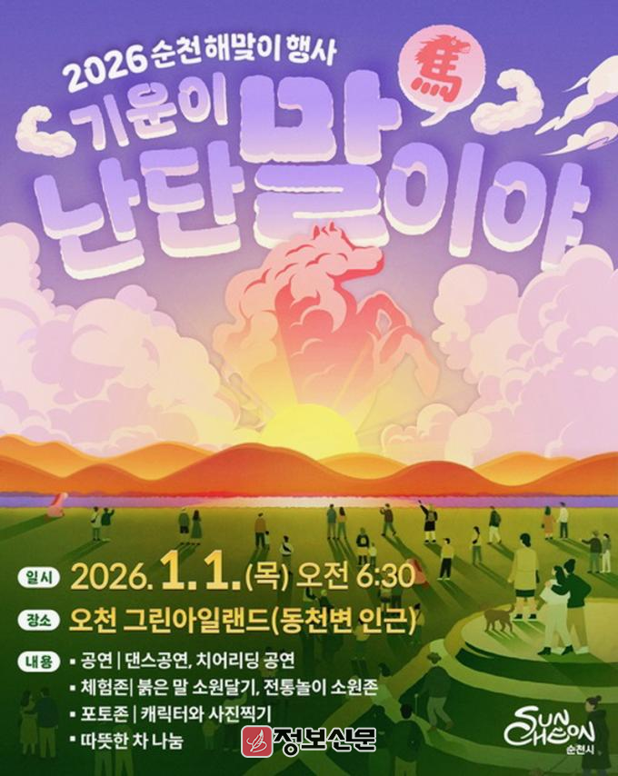 순천시 관계자는 “2026년 붉은 말의 해를 맞아 팔마의 도시 순천에서 시민 여러분과 함께 활기찬 새해를 열게 되어 뜻깊다”며, “이번 해맞이 행사를 통해 시민 모두가 적토마처럼 힘찬 발걸음으로 희망찬 순천의 내일을 함께 만들어 가는 계기가 되기를 바란다”고 전했다.