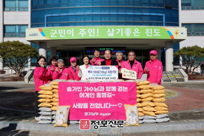 송가인 공식 응원 모임(팬클럽)인 ‘경기남부 어게인’은 최근 취약계층 지원을 위해 300만 원 상당의 백미 100포를 진도군에 기탁 했다.