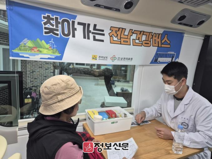 ‘찾아가는 전남건강버스’는 고흥군과 전라남도, 순천의료원이 공동 운영하는 사업으로, 지역 간 의료서비스 격차를 해소하기 위해 의료 취약지 마을을 찾아가 군민의 건강관리를 위한 보건의료서비스를 제공하는 사업이다.