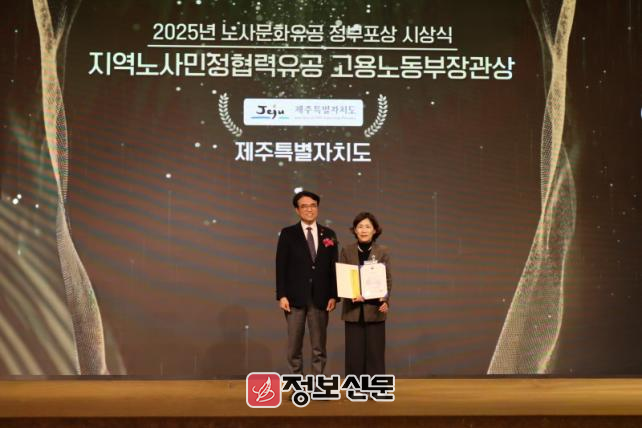 이번 수상은 고용노동부가 전국 지자체를 대상으로 노사민정 협력체계 구축, 지역 노동현안 해결 성과, 정책 실효성 등을 종합 평가해 수여하는 정부 포상이다. 제주도는 현장 중심의 사회적 대화와 실질적 성과 창출에서 높은 점수를 받았다.
