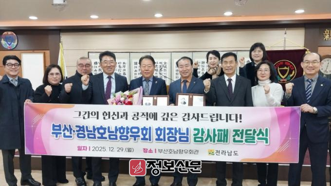 ![]() 전라남도, 부산.경남 호남향우회장에 감사패 전달 |