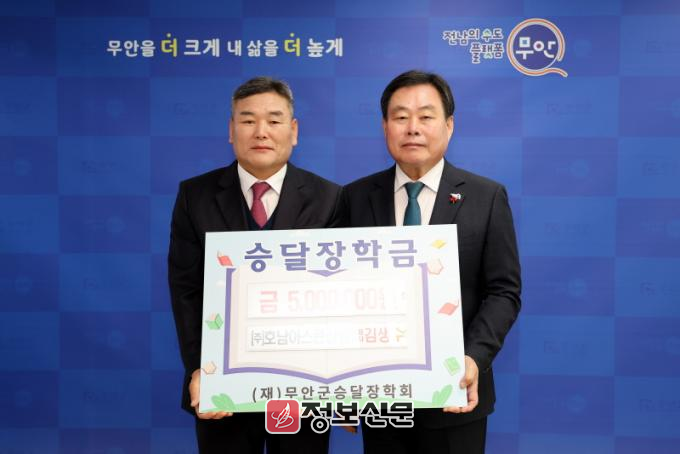 ![]() ㈜호남아스콘산업 김생수 대표, 승달장학금 500만 원 기탁 |