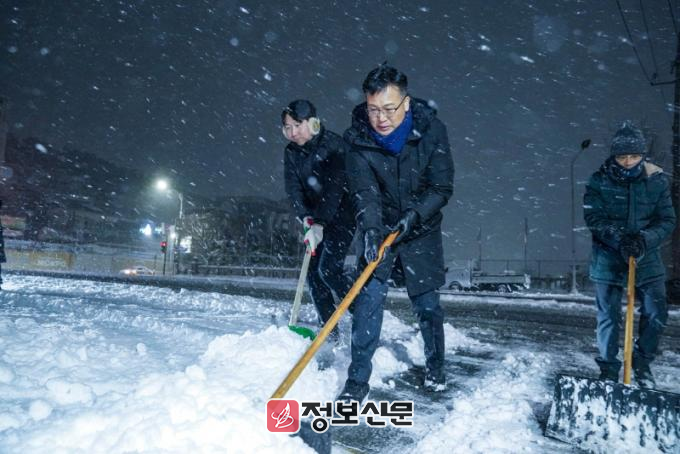 또한 시민 불편을 최소화하기 위해 2일 오전 6시부터 전 직원을 비상 소집해 담당 구역별로 배치하고, 인도와 버스승강장, 횡단보도 등 보행자 통행이 잦은 구간을 중심으로 인력 제설을 병행했다.
