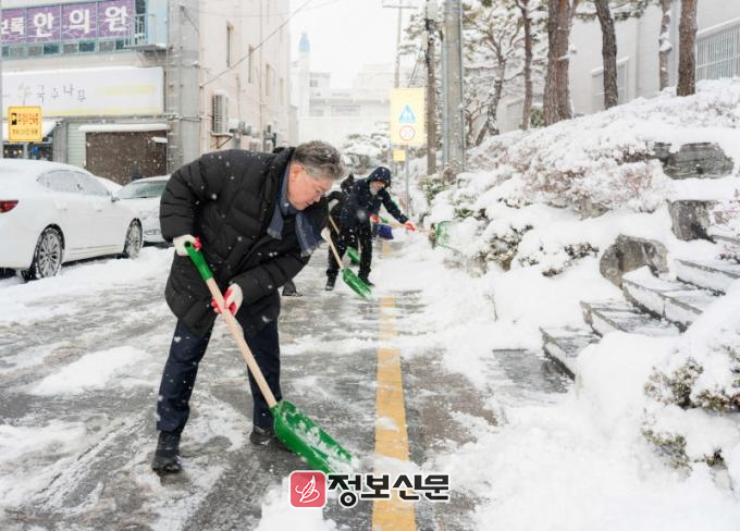 그러나 여전히 많은 눈이 남아 있어, 이날 오전 장세일 군수와 안전관리과를 비롯한 군청 직원들이 다시금 주요 시가지에서 제설 작업을 이어갔다.
