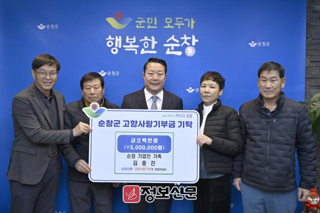 ![]() 순창 기업인 가족 김종진 씨, 고향사랑기부금 500만원 기탁 |