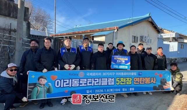 국제로타리 3670지구 이리동로타리클럽(회장 조승완)은 6일 2026년 병오년 새해 첫 공식 행사로 연탄 나눔 봉사활동을 펼치며 지역사회에 온정을 전했다.