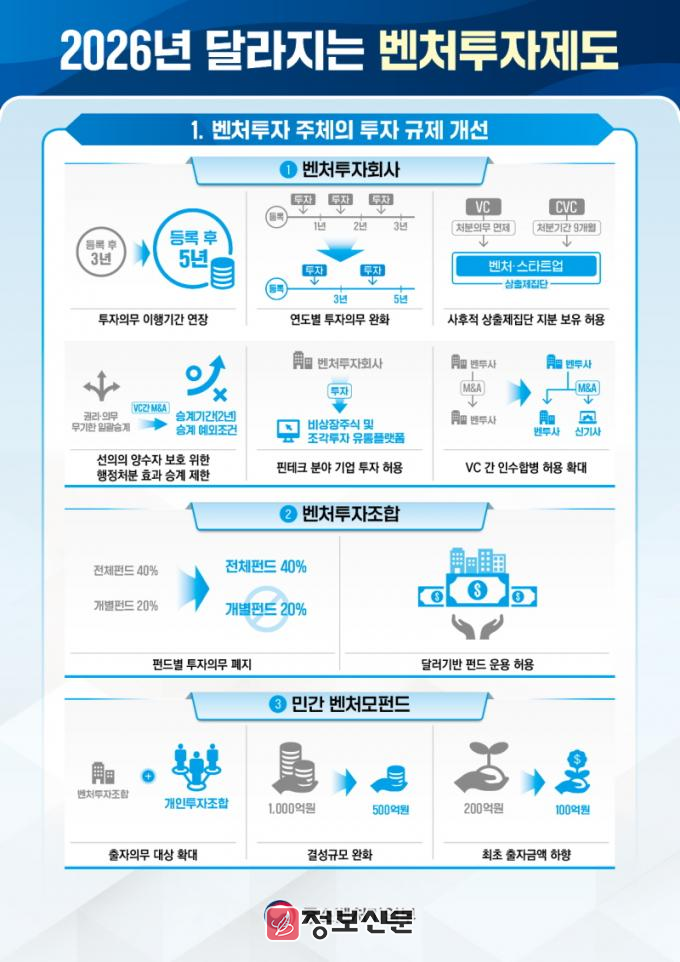 ![]() 중소벤처기업부, 2026년 새롭게 달라지는 벤처투자 제도 발표 |