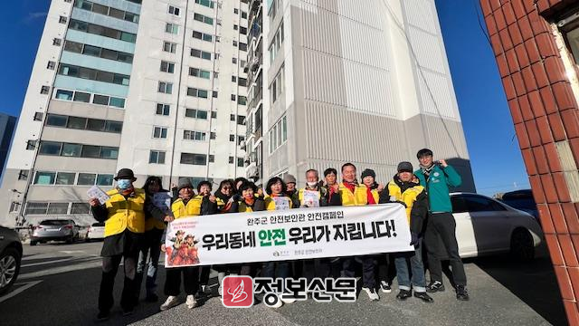 또한 완주군 안전보안관들은 아파트 입주민을 대상으로 화재 시 피난 행동 요령과 전기 사고 예방 수칙 등이 담긴 홍보 리플릿을 배부하며 겨울철 화재 예방 캠페인을 함께 전개했다.
