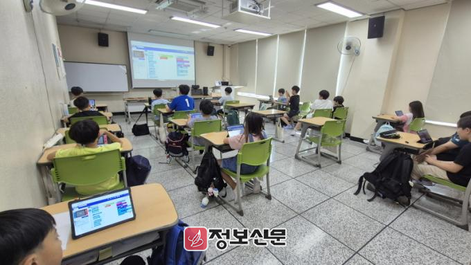 창의융합코딩교실은 AI와 메타버스 기반의 체험형 교육으로 구성됐다. 학생들은 3D 가상공간에서 코딩과 프로그래밍을 학습할 수 있는 교육용 메타버스 플랫폼 ‘코스페이시스(CoSpaces)’를 활용해 가상도시를 설계하고 구현하는 활동에 참여했다.