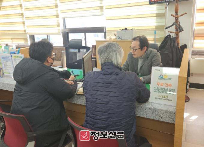 건축 민원 무료 상담실은 군청 민원봉사과 사무실 내에 마련되며 매월 둘째, 넷째 주 평일 오후 2시부터 4시까지 별도의 예약 없이 방문하여 이용할 수 있다.