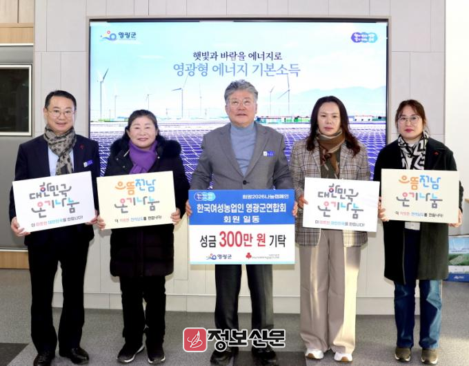 ![]() 한국여성농업인 영광군연합회, ‘희망2026 나눔 캠페인’ 이웃돕기 성금 300만 원 기탁 |