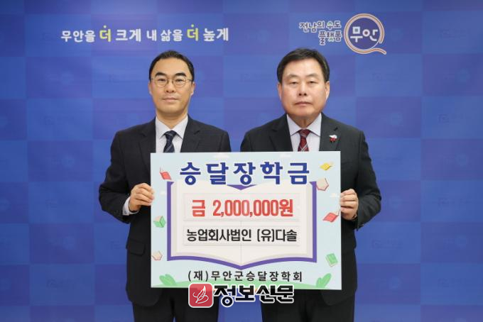 ![]() 농업회사법인 다솔 김지수 대표, 승달장학금 200만 원 기탁 |