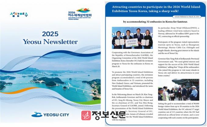 한편, 여수시는 국제 자매·우호도시를 중심으로 E-뉴스레터를 배포하며 여수세계섬박람회 온라인 홍보활동도 꾸준히 이어가고 있다.