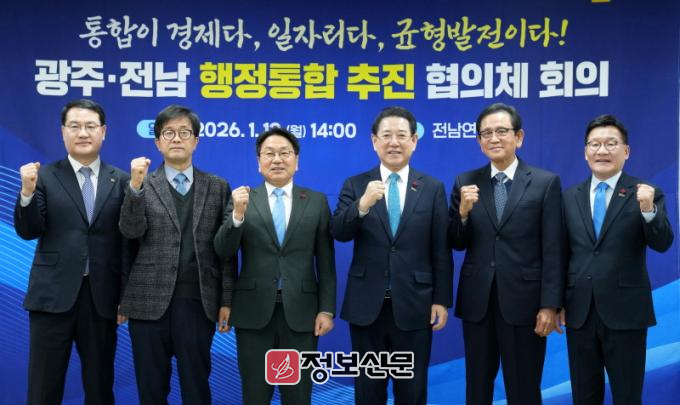 전남도와 광주시는 지난 2일 ‘광주·전남 대부흥’의 새 역사를 열기 위한 대통합 공동선언을 발표하고, 행정 지원을 위한 추진기획단 구성·운영에 착수했다. 이어 이번 추진협의체 회의를 통해 행정통합 논의 구조를 가동해 실질적 추진력을 높일 방침이다.