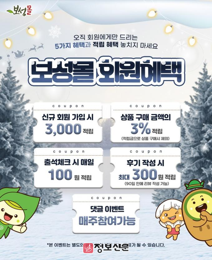 또한, 보성몰은 높은 재구매율을 바탕으로 안정적인 성장 구조를 구축했다. 명절 시즌 최대 20% 할인 행사를 비롯해 ▲신규 회원 가입 시 3,000포인트 지급, ▲구매 금액의 3% 적립, ▲출석 체크 포인트 지급, ▲후기 작성 포인트 지급 등 고객 친화적인 혜택과 이벤트를 통해 충성 고객층을 확보하고 있다.