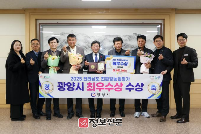 ![]() 지속가능한 농업 선도 광양시, 전남 친환경농업 평가 ‘최우수상’ 수상 |