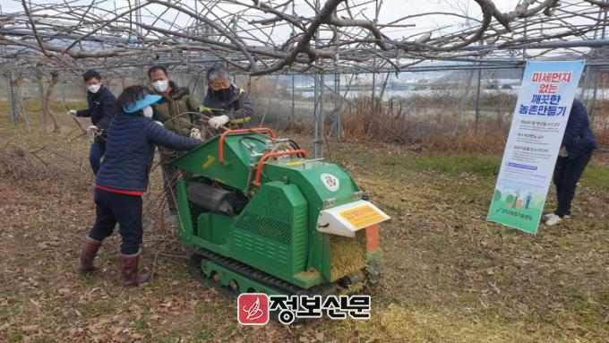 이번 사업은 영농부산물 파쇄지원단이 농가로 직접 찾아가 과수와 밭작물 재배 과정에서 발생하는 잔가지 등 영농부산물을 현장에서 무상으로 파쇄해 주는 방식으로 진행된다.