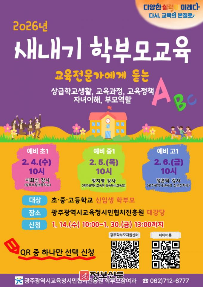 ![]() 광주시교육청시민협치진흥원,2026년 새내기 학부모 대상 ‘새 학기 준비’ 교육 진행 |