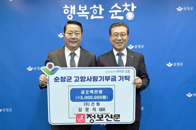 ![]() ㈜건화 김문석 대표이사, 순창군에 고향사랑기부금 500만원 기탁 |