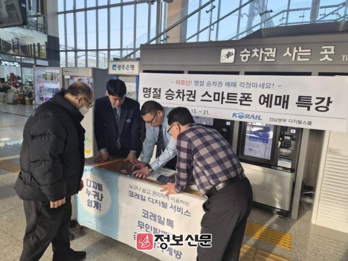 임정운 코레일 전남본부장은 “디지털 기기 사용이 서툰 분들에게는 스마트폰 승차권 예매가 큰 벽처럼 느껴질 수 있다”며 “앞으로도 디지털 장벽 없이 온 가족이 즐겁게 만나는 따뜻한 설 명절을 보낼 수 있도록 디지털 동행에 앞장서겠다”고 말했다.