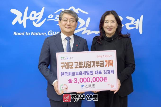 ![]() 한국희망교육개발원 김경희 대표, 구례군에 고향사랑 기부금 기탁 |