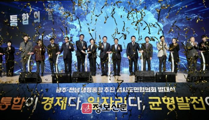 광주광역시(시장 강기정)와 전라남도(지사 김영록)는 16일 오후 3시 김대중컨벤션센터에서 ‘광주‧전남 행정통합 추진 범시도민 협의회’ 발대식을 열고, 대한민국 최초의 통합 광역지방정부 탄생을 위한 시도민 역량 결집에 나섰다.