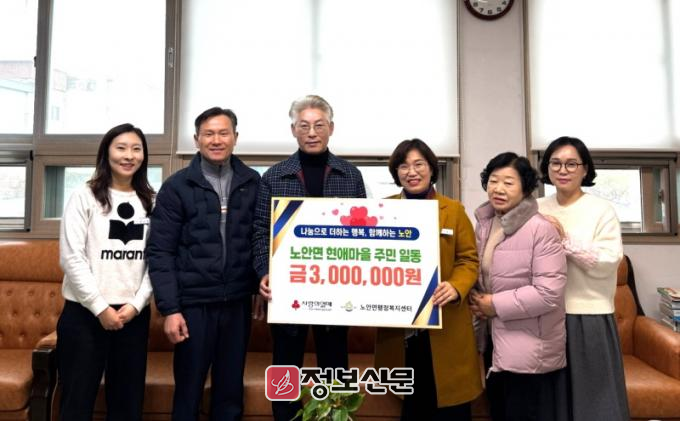 문혜인 노안면장은 “매년 지속적으로 실천해 주신 따뜻한 나눔에 깊이 감사드린다”며 “기탁해 주신 성금은 도움이 필요한 이웃들을 위해 소중하게 사용하겠다”고 말했다.
