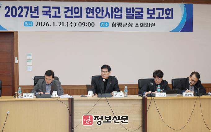 함평군은 21일 “이날 ‘2027년 국고 건의 현안 사업 발굴 보고회’를 열고 농업·관광·정주 여건 개선 등 군정 주요 현안과 연계한 국고 건의 사업을 집중적으로 점검했다”고 밝혔다.
