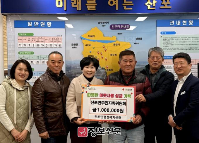 산포면주민자치위원회는 성금 기탁뿐만 아니라 마을 가꾸기, 환경정화, 주민 화합을 위한 각종 행사 등 다양한 주민자치 활동을 통해 지역공동체 활성화에 앞장서고 있다.