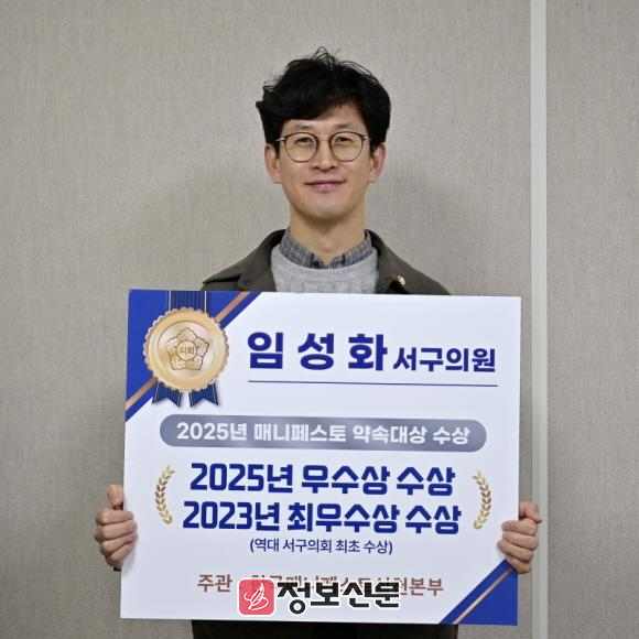 ![]() 광주 서구의회 임성화 의원, 「2025 한국매니페스토실천본부 지방의원 약속대상」 수상 |
