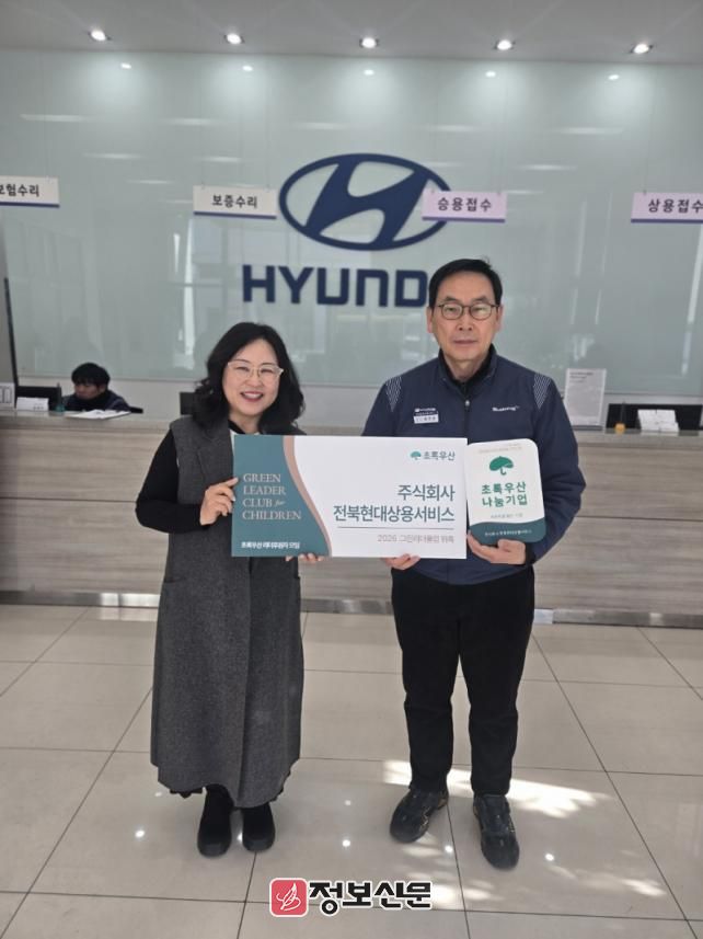 ㈜전북현대상용서비스 이중재 대표는 “초록우산과 함께 아이들이 더 밝은 미래를 꿈꿀 수 있도록 응원할 수 있게 되어 매우 뜻깊다며, 앞으로도 다양한 사회공헌 활동을 실천하겠다고 말했다.