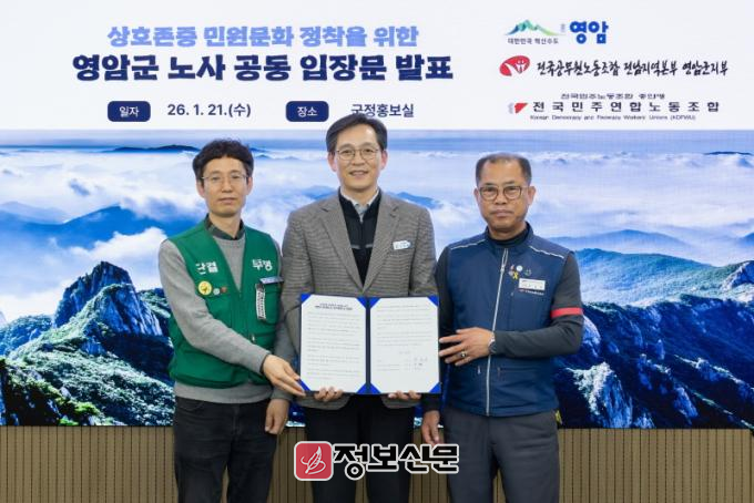 영암군과 전국공무원노동조합 영암군지부, 전국민주연합노동조합 영암지부가 함께 발표한 이날 입장문은, 일부 민원 제기 과정에서 발생하는 폭언·폭행·협박 등으로부터 공직자의 인권과 안전을 보호하기 위해 마련된 것.