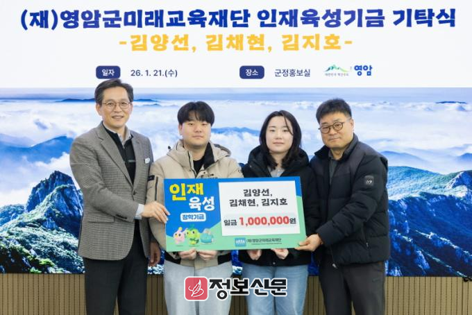 ![]() (재)영암군미래교육재단-김양선 채호 지호 가족 영암군 장학금 기부 |