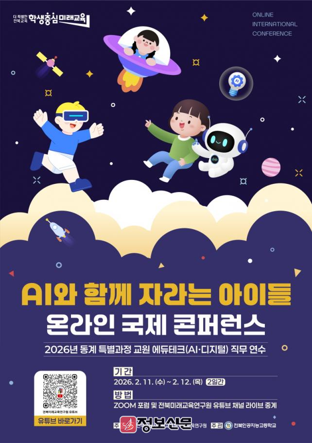 미래교육연구원이 주최하고, 전북인공지능고등학교가 주관하는 이번 콘퍼런스는 ‘국내외 교육전문가와 함께하는 AI 디지털 교육의 미래’를 주제로 AI 기술 환경 속에서 아동·청소년이 갖추어야 할 핵심 역량을 모색하고, 미래 교육의 비전을 공유하기 위해 마련된다.