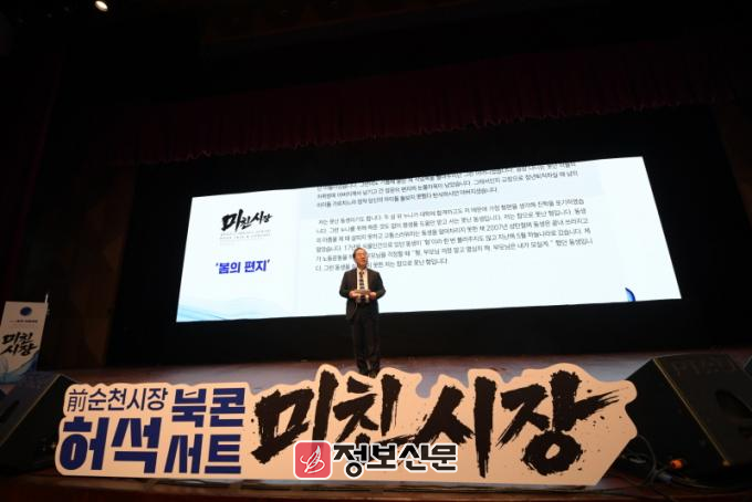 북콘서트는 25일(일) 오후 4시 국립순천대학교 우석홀에서 열렸으며, 행사 시작 전 입구에서부터 문전성시 인파로 인하여 시민들이 몰리며 좌석이 가득 찼다. 허 전 시장은 이날 의전 중심의 기존 정치 행사 관행을 깨고 내빈석과 축사를 전면 생략했다. 그는 “오늘 이 자리에 온 분들 한 분 한 분이 주인공”이라며 시민 중심 행사의 취지를 분명히 했다.