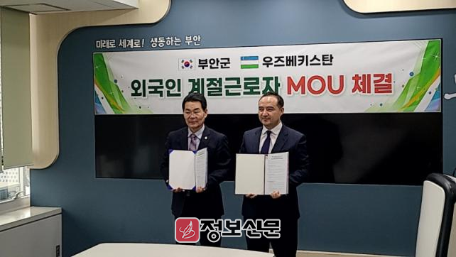 ![]() 부안군, 우즈베키스탄 안디잔주와 외국인 계절근로자 도입 MOU 체결 |