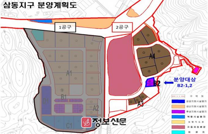 공고기간은 1월 26일부터 2월 13일까지이며, 분양 대상 용지는 중흥2지구는 생산지원시설용지 6필지와 후생지원시설용지 19필지로 총 25필지(1만 6,199.3㎡)와 삼동지구 후생지원시설용지 2필지(2,187.3㎡)다.