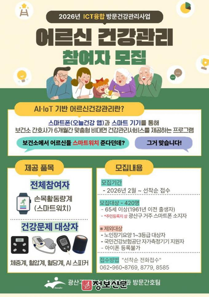 ![]() 광주시 광산구, 어르신건강관리사업 신규참여자 모집 |
