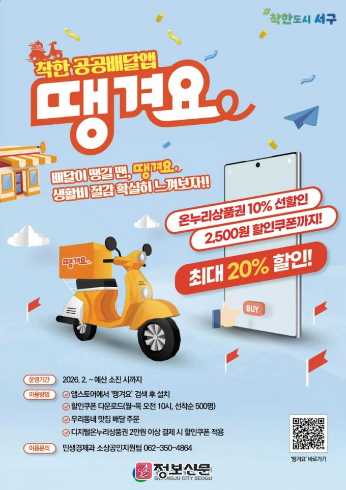 ![]() 광주시 서구, 공공배달앱 할인쿠폰 지원사업 시행 |