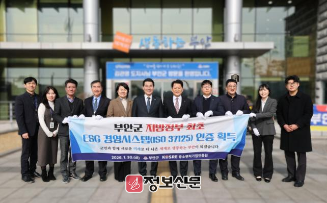 부안군 관계자는 “이번 ESG 경영시스템 인증은 군이 지속 가능한 지역 발전과 책임 행정을 향해 나아가고 있음을 대외적으로 인정받은 것”이라며 “앞으로도 ESG 가치를 행정 전반에 확산시켜 군민이 체감할 수 있는 지속 가능 행정을 실현해 나가겠다”고 말했다.