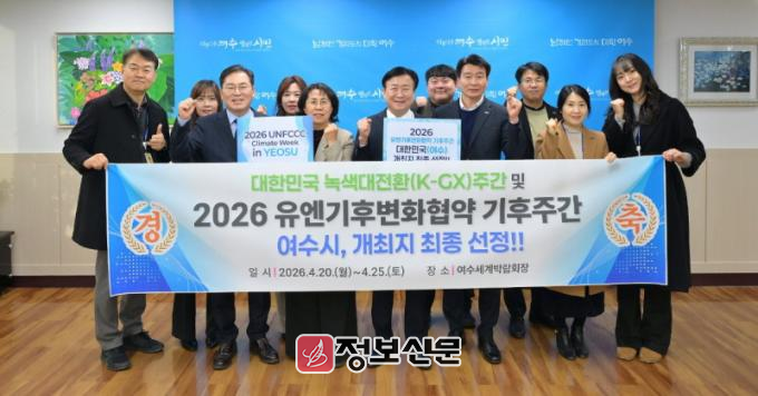 ![]() ▲ 여수시가 ‘2026년 유엔기후변화협약(UNFCCC) 기후주간(Climate Week)’ 개최지로 대한민국(여수)이 최종 선정됐다.