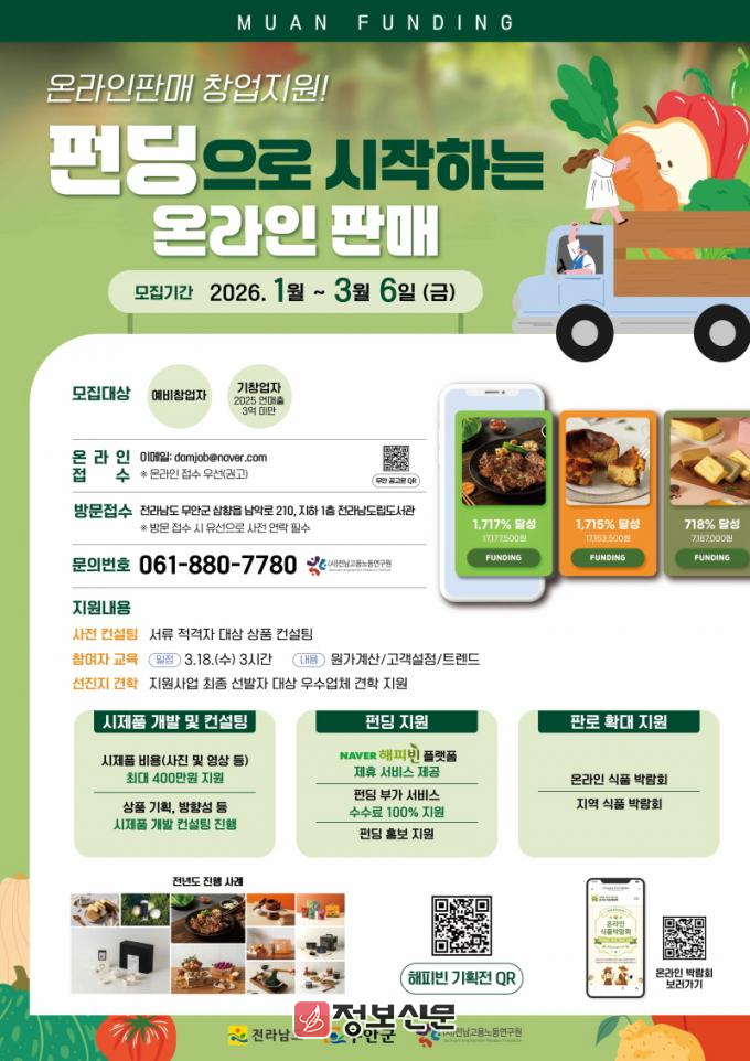 ![]() 무안군, 펀딩 연계 식품 창업 지원사업 참여자 모집 |