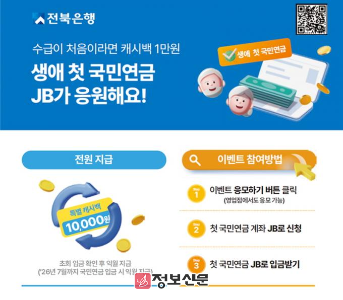 전북은행 관계자는 “국민연금 첫 개시는 은퇴 이후 새로운 삶이 시작되는 중요한 전환점으로 고객의 인생 2막 출발을 응원하는 의미에서 이번 이벤트를 마련했다“며 ”앞으로도 시니어 고객을 위한 실질적인 금융혜택과 편의성을 높이는 특화 서비스를 지속 확대해 나갈 계획“이라고 말했다.