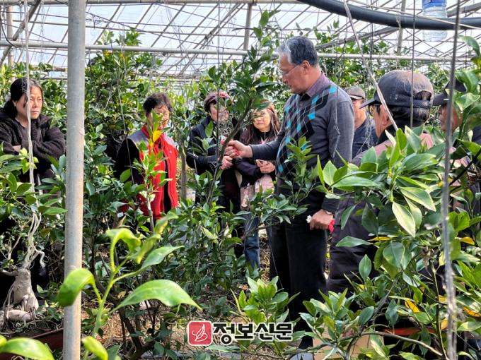 이번 교육은 만감류(레드향)와 감 재배 농가를 대상으로 농가 포장에서 직접 실습하는 방식으로 진행된다.